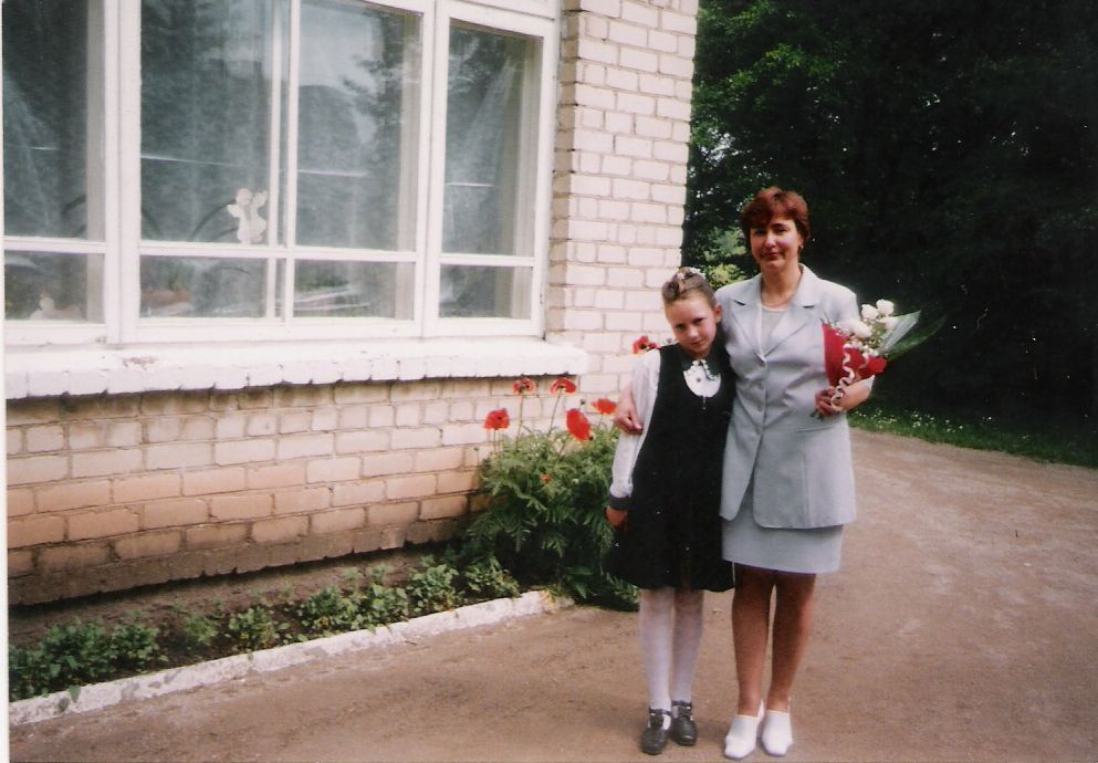 Kai aš buvau trečiokė, brolis buvo pirmokas. Tokia klasių politika buvo puiki terpė rinkti skundus mamai vienas apie kitą ? Su pirmąja mokytoja, Preičiūnų Pradinės Mokyklos baigimo proga (2000 m.)