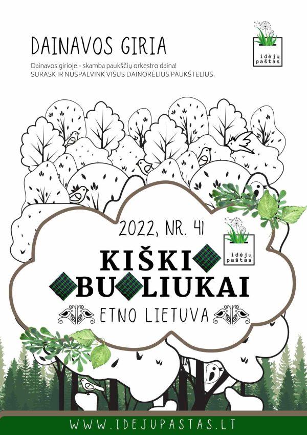- Spalvinimo šablonai: “TAUTINIS KOSTIUMAS” (dzūkės ir dzūko); “GYVYBĖS MEDIS“;