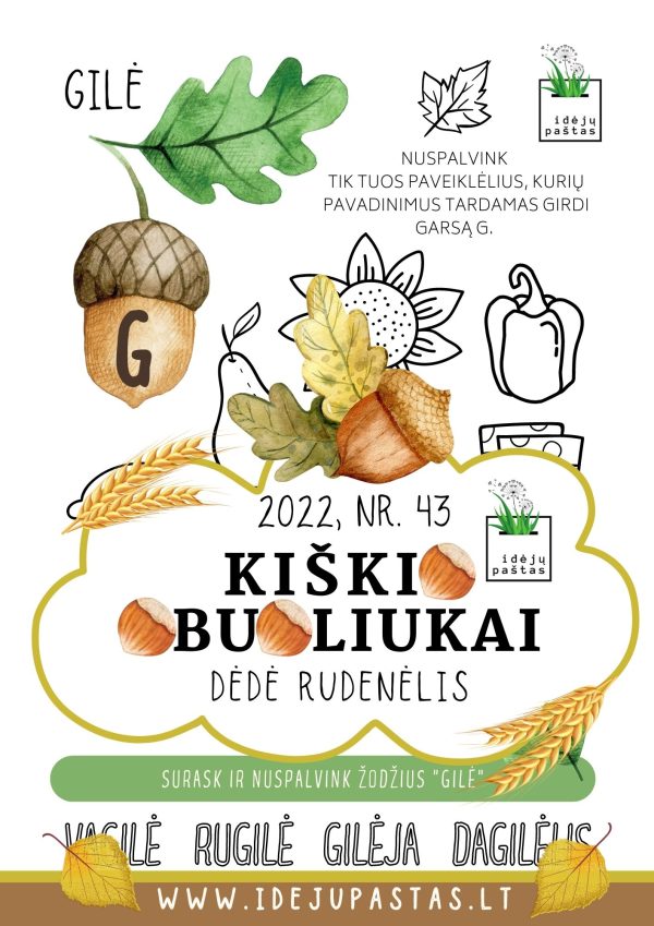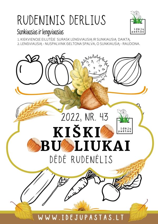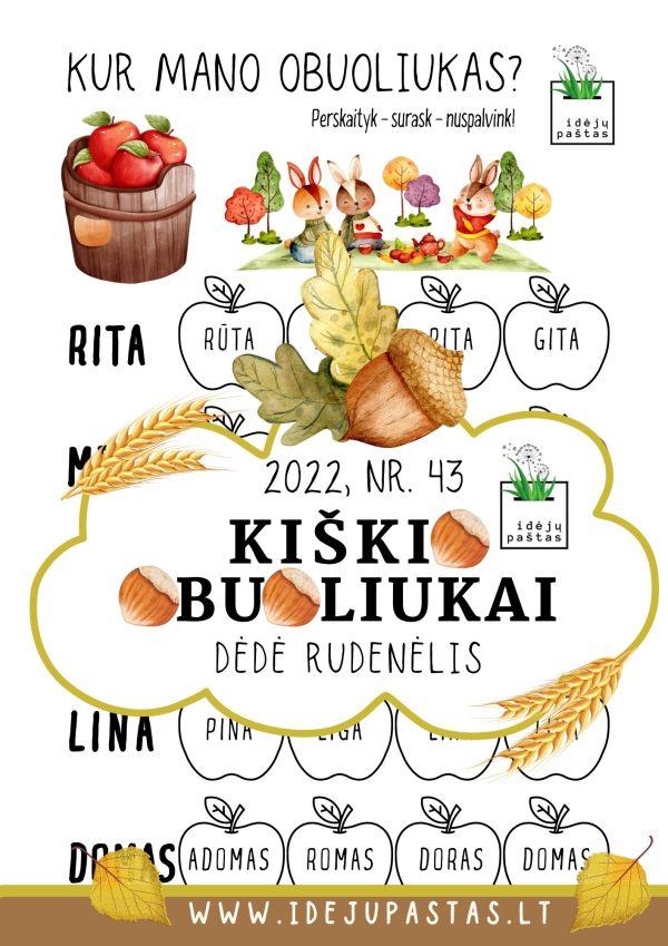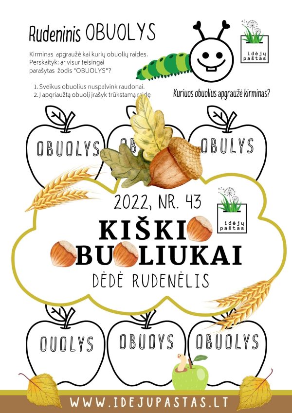 “KIŠKIO OBUOLIUKAI” NR. 43 pdf užduotys apie rudenį: dėdė rudenėlis.