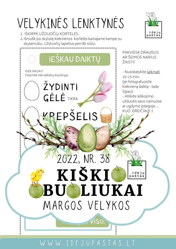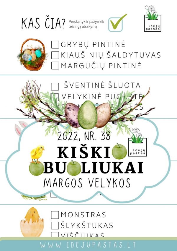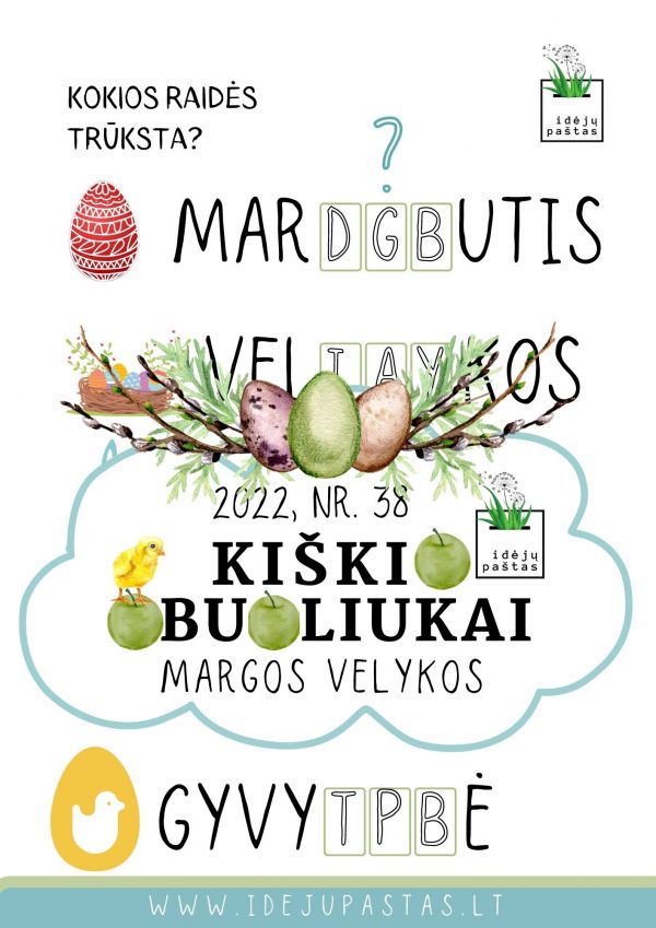 KIŠKIO OBUOLIUKAI” NR. 38 PDF užduotys tema – MARGOS VELYKOS