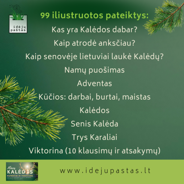 • Pažintinė pamoka apie LIETUVIŲ KALĖDŲ TRADICIJAS IR PAPROČIUS, APIE KALĖDŲ LAUKIMĄ IR ŠVENTIMĄ LIETUVOJE prieš daug metų.  Pateiktys gausiai iliustruotos.