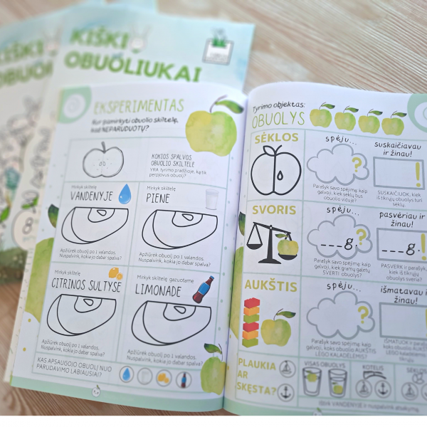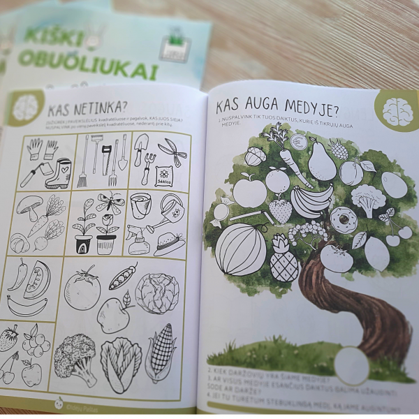 KIŠKIO OBUOLIUKAI 2021 popierinė knygelė – skanios užduotys 4-7 M. vaikams!